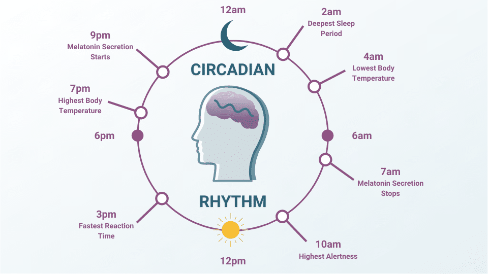 Today, I want to focus on coping with the time change. I also want to talk about ways to maximize our circadian rhythm. Before that, I want to point out the importance of our circadian rhythm. Our circadian rhythm is a simple concept. It is a 24-hour cycle that matches the daylight and dark hours in a day. Our circadian rhythm intertwines with different hormones that effect our sleep, digestion, body temperature and hunger in particular. The diagram below demonstrates how melatonin, a hormone made in the pineal gland acts. It tends to increase as it is darker which tells our brain to sleep. In the day time cortisol and serotonin are other hormones that help us arise and stay awake. Along with this, our body temperature fluctuates. So why is this important to know?